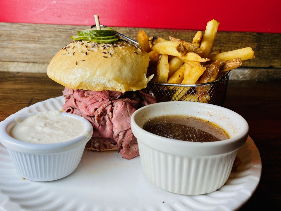 Sliced Roast Beef, Kimmelweck Roll, Horseradish Cream