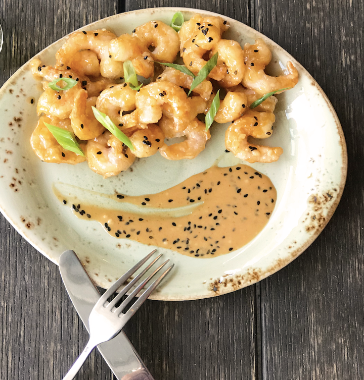 Flash Fried Shrimp, Sriracha & Sesame Aioli, Scallions
