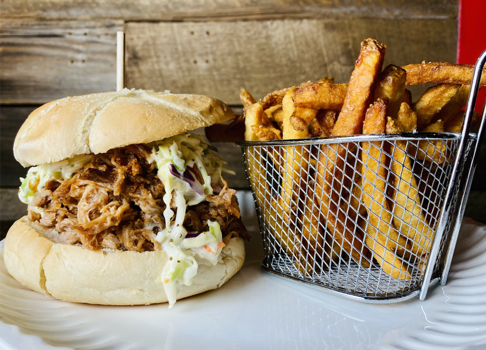 Smoked Pork, Brioche Bun, BBQ, Coleslaw