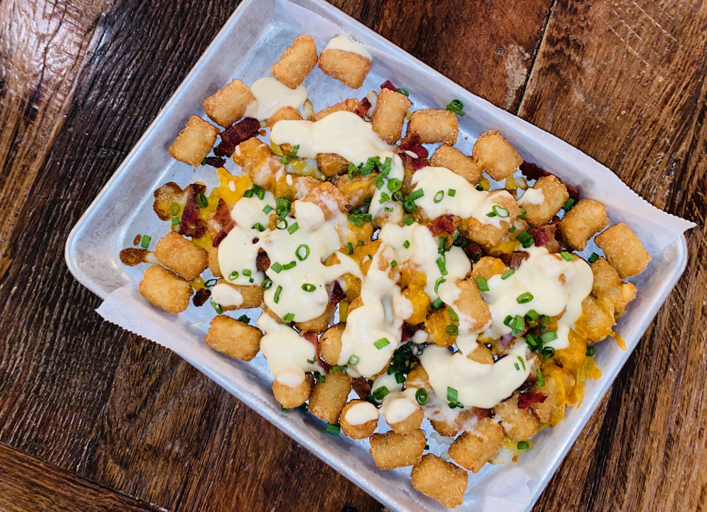 Yukon Gold Potatoes, Double Smoked Bacon, Cheddar Cheese, Panko Breadcrumbs, Chive Sour Cream, Sriracha, Scallions